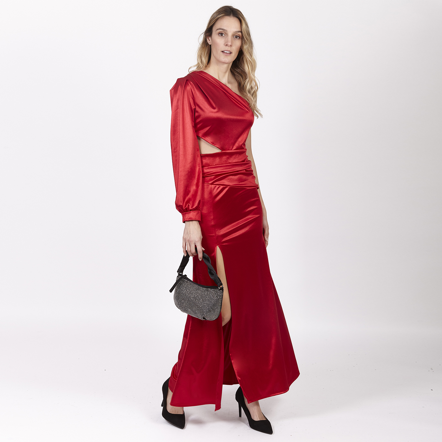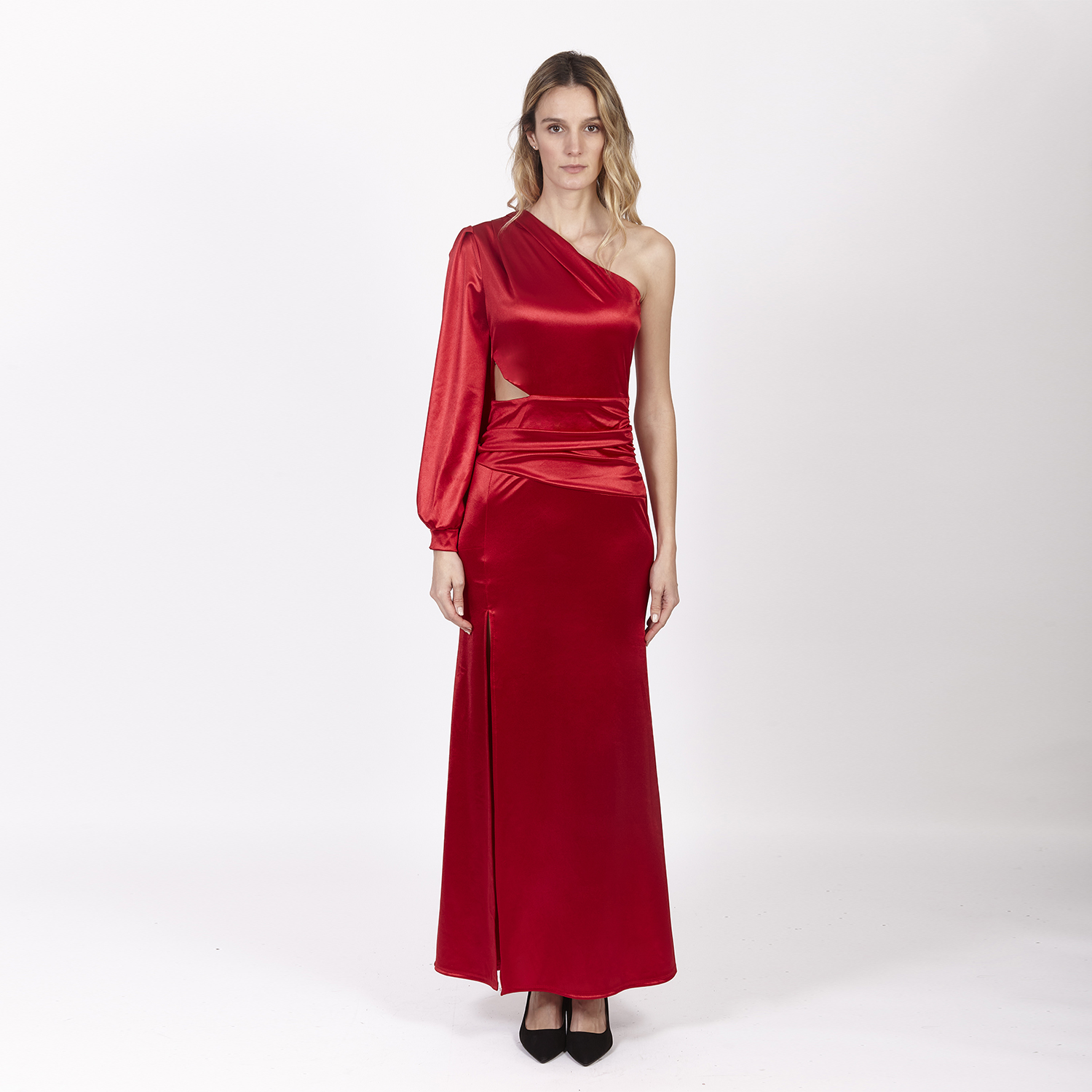 Nuestro vestido más vendido. Vestido de manga asimétrica. Uno de ellos de manga larga y volumen. Escote asimétrico. Vestido largo y entallado que realza la figura de quien lo lleva. En la parte de la cintura tiene una abertura que destaca. Es un conjunto que combina con todo tipo de complementos y es ideal para no pasar desapercibida. No olvides ver nuestra colección completa para completar tu look.