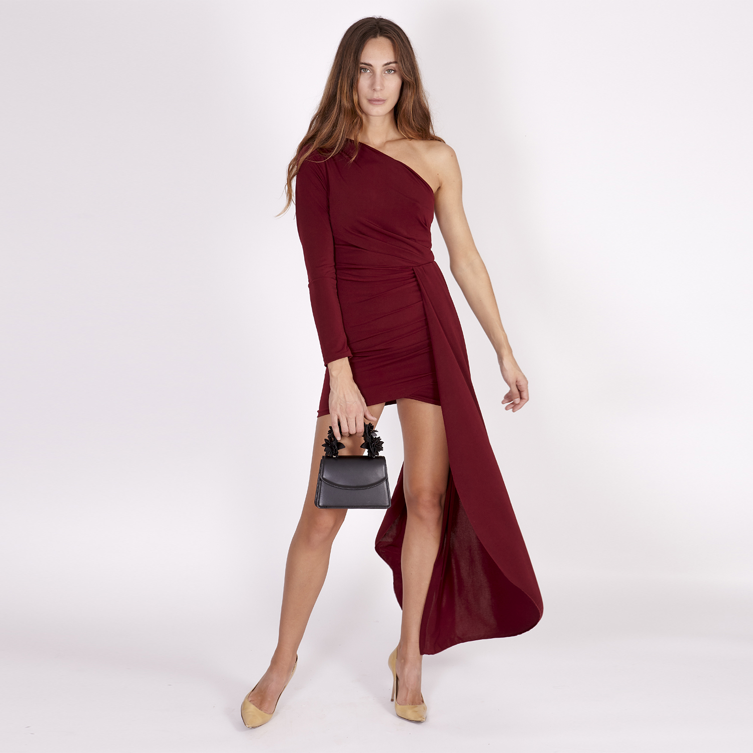 Nuestro vestido superventas con escote asimétrico. El lado derecho tiene mangas largas orientadas hacia la izquierda que dejan al descubierto el hombro y el brazo. Es corto por encima de la rodilla. Fruncido a lo largo de la silueta. Cómodo y ligero. Tiene volumen en uno de los laterales aportando movimiento y juego a la prenda. No olvides ver toda nuestra colección para completar tu look.